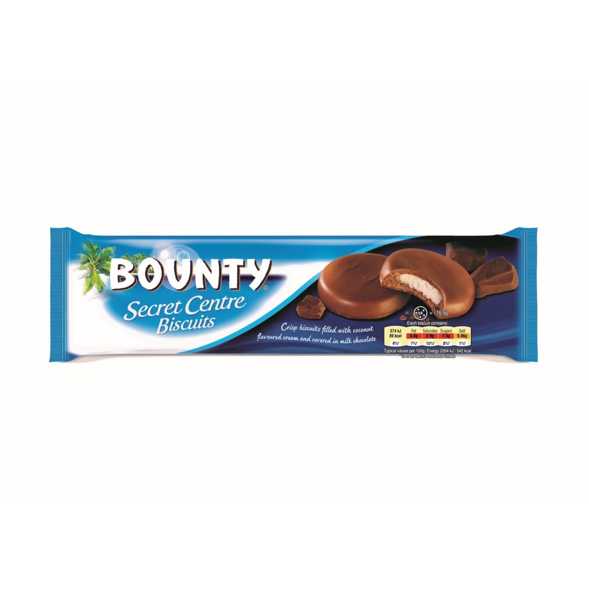 Dive into the rich taste of Bounty Secret Centre Biscuits! Crisp on the outside with a divine hidden centre that boasts of the delicious flavours of sweet, tropical coconut, wrapped in creamy milk chocolate. Perfectly suited for the occasional snack, tea-time delight or even as a special treat in your child's lunch box. Pack comes with plenty to share around. Order your Bounty biscuits now for a tropical getaway in every bite!