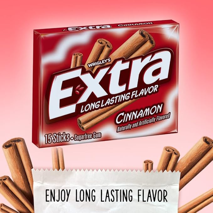 When you unwrap a stick of Extra gum, you get more than just fresh breath. You get the long-lasting flavor that rids distractions and welcomes meaningful moments. With 10 gum packs bulk in this box, there will be loads of moments to enjoy. From late-night study sessions to preparing crucial presentations, Extra cinnamon chewing gum is the fresh and spicy flavor you need. Extra cinnamon chewing gum can even offer a refreshing break. Let the commute home, the walk in the park, or sitting at your desk be far more invigorating. What's your first special moment? Consider gifting a pack of gum individually wrapped to a classmate, family member, or someone new, and watch what happens.