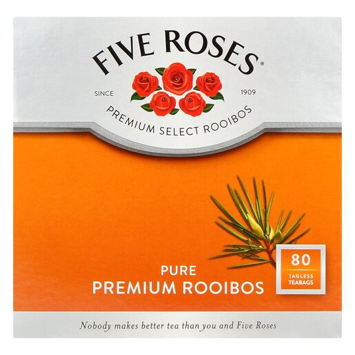 Experience the soothing goodness of Five Roses Rooibos Select Tea, now available in a convenient pack of 80 tea bags. Perfect for tea lovers looking to enjoy a delicious, caffeine-free beverage, this rooibos tea is crafted from premium South African rooibos leaves, offering a naturally sweet and aromatic flavour profile that’s both delightful and refreshing. This versatile tea can be enjoyed hot or iced, making it suitable for any time of year—whether you want a cozy cup to enjoy by the fireplace or a chilled drink to sip on a sunny day. With the robust antioxidant properties of rooibos, you're not just indulging in a tasty steep; you’re also contributing to your overall wellness. Five Roses is a trusted brand that stands for quality and tradition, ensuring that every sip delivers the rich, full-bodied taste rooibos is known for. Treat yourself to a moment of relaxation and discover why Five Roses Rooibos Select Tea is a favourite among health-conscious tea enthusiasts. Grab your pack of 80 tea bags today and elevate your tea experience!