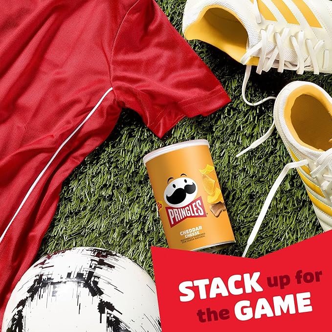 What comes next after the "pop" of Cheddar Cheese Pringles Grab N' Go can? The crisp flavor of savory Cheddar Cheese that hits the spot every time. Insanely light, crispy and never greasy, each crisp is ingeniously shaped and satisfyingly tangy. With this convenient individual size can, it's easy to create your own snacking moments wherever and whenever, like grabbing a can as an after-school pick-me-up or packing into lunch boxes; Bring a can for game time plus some for other Pringles fans. Stash a can in your work desk or pantry to enjoy anytime. Share Pringles at your next get-together to turn up excitement among family and friends. Get your hands on Pringles Cheddar Cheese Potato Crisps for awesomeness that keeps you coming back, stack after stack.