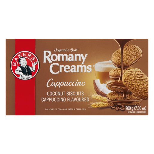 Bakers Romany Creams are a well-known brand. For decades, South Africans have enjoyed these crispy chocolate coconut sandwich cookies. You've probably tried and enjoyed the original. Maybe it's time you try the Bakers Romany Creams Cappuccino Flavoured Biscuits.